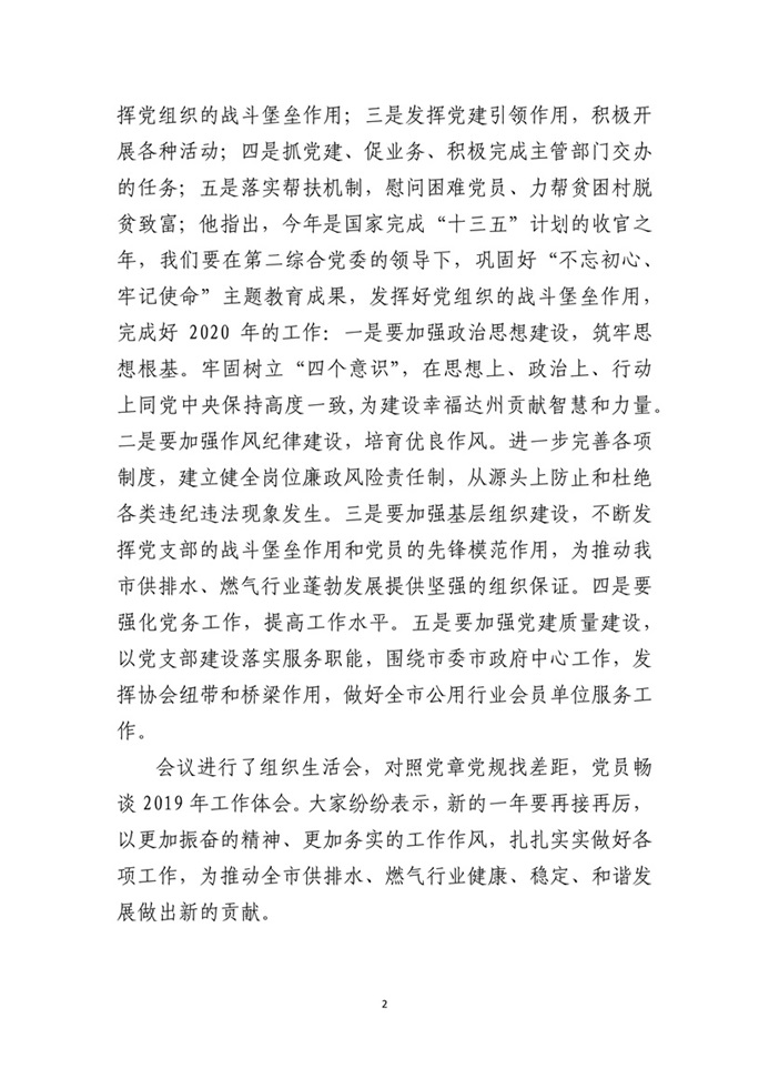 中共達州市城鎮(zhèn)公用行業(yè)協(xié)會聯(lián)合支部委員會2020年第二期簡報
