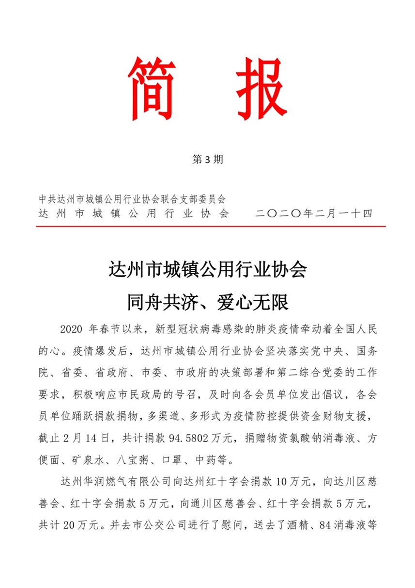 中共達(dá)州市城鎮(zhèn)公用行業(yè)協(xié)會聯(lián)合支部委員會2020年第三期簡報(bào)