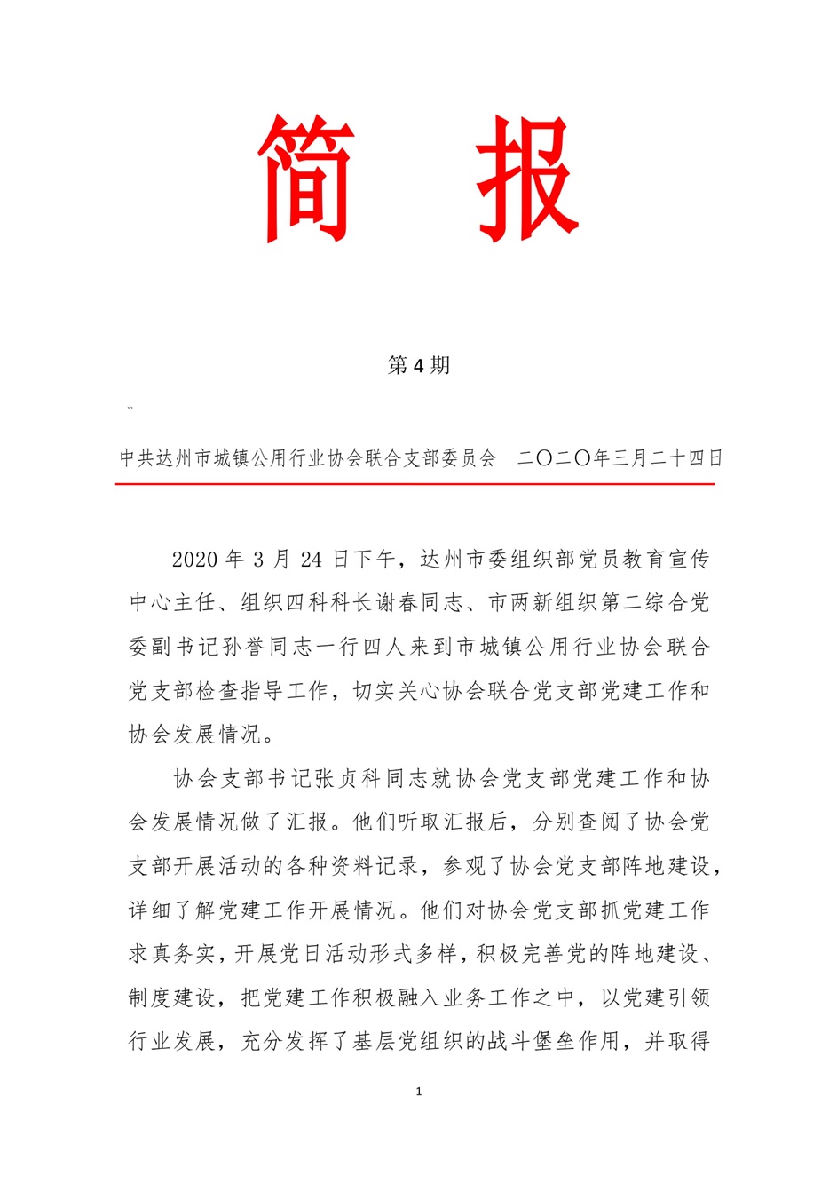 中共達州市城鎮(zhèn)公用行業(yè)協(xié)會聯(lián)合支部委員會2020年第四期簡報