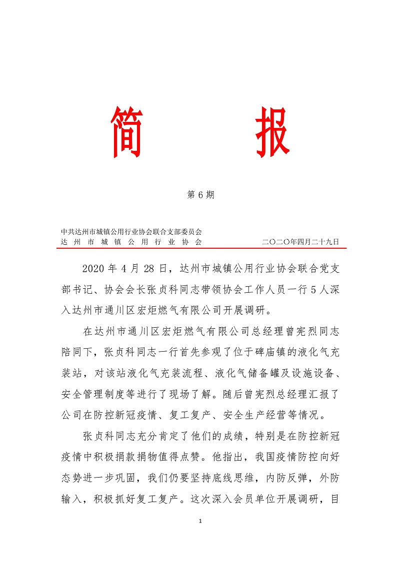 中共達(dá)州市城鎮(zhèn)公用行業(yè)協(xié)會(huì)聯(lián)合支部委員會(huì)2020年第六期簡報(bào)