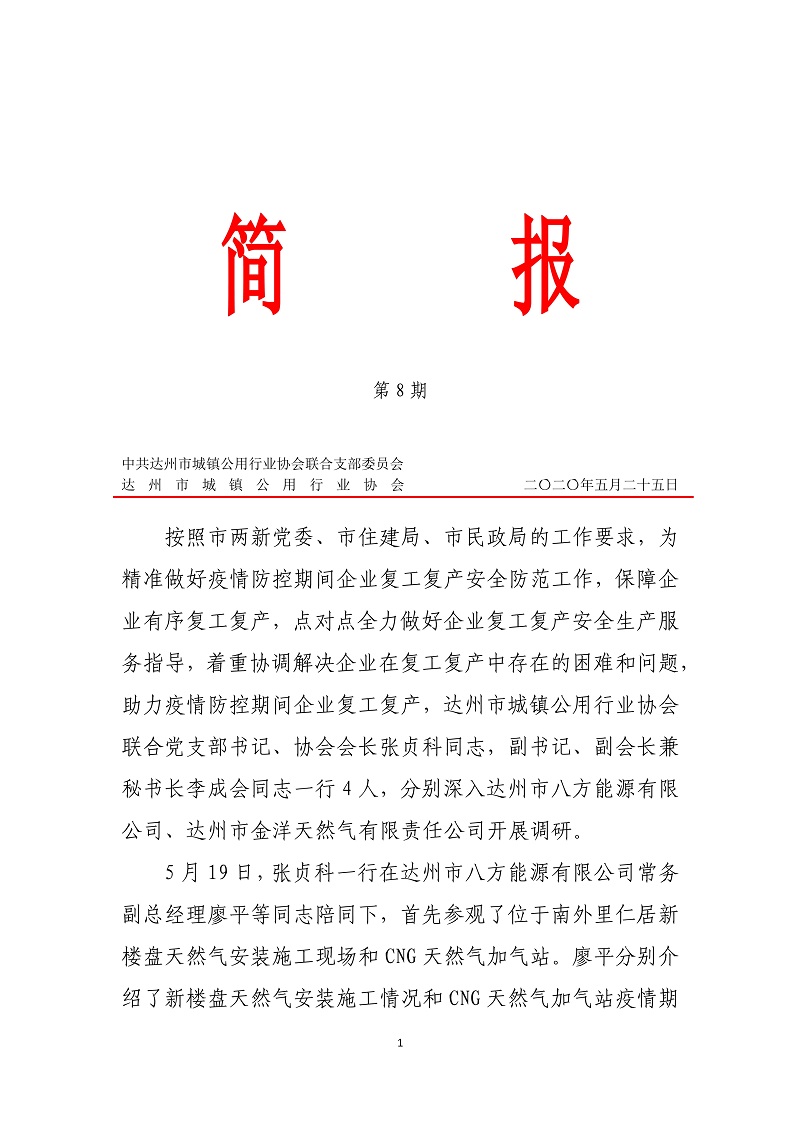 中共達州市城鎮(zhèn)公用行業(yè)協(xié)會聯(lián)合支部委員會2020年第八期簡報