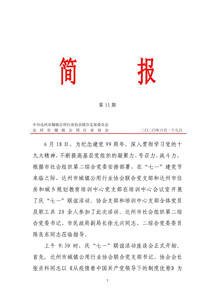 達州市城鎮(zhèn)公用行業(yè)協(xié)會2020年第十一期簡報