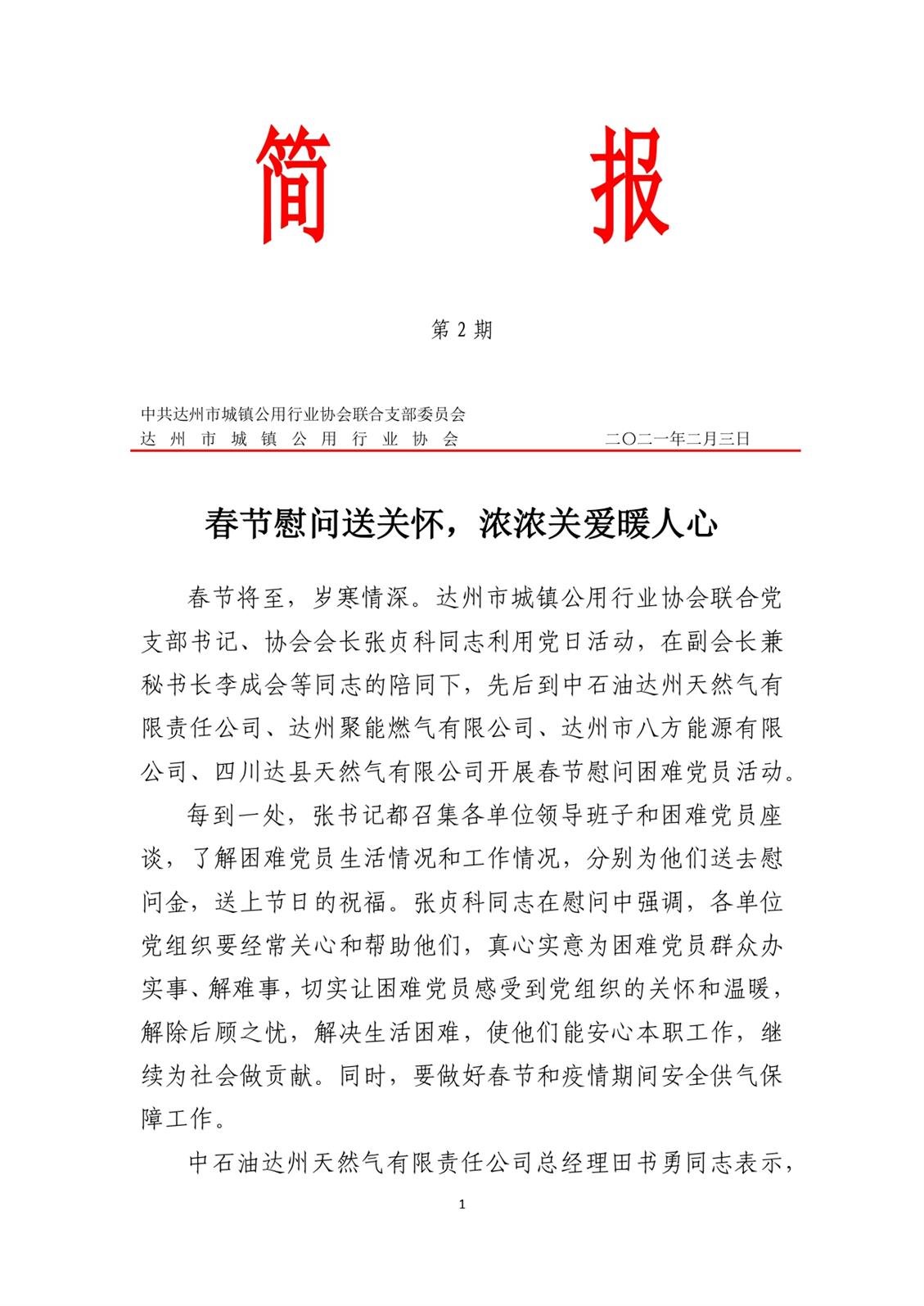 中共達(dá)州市城鎮(zhèn)公用行業(yè)協(xié)會(huì)聯(lián)合支部委員會(huì)2021年第一期簡(jiǎn)報(bào)