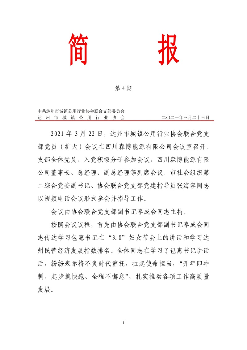 中共達(dá)州市城鎮(zhèn)公用行業(yè)協(xié)會(huì)聯(lián)合支部委員會(huì)2021年第四期簡(jiǎn)報(bào)