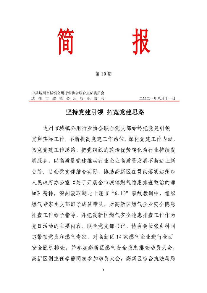 中共達(dá)州市城鎮(zhèn)公用行業(yè)協(xié)會(huì)聯(lián)合支部委員會(huì)2021年第十期簡報(bào)