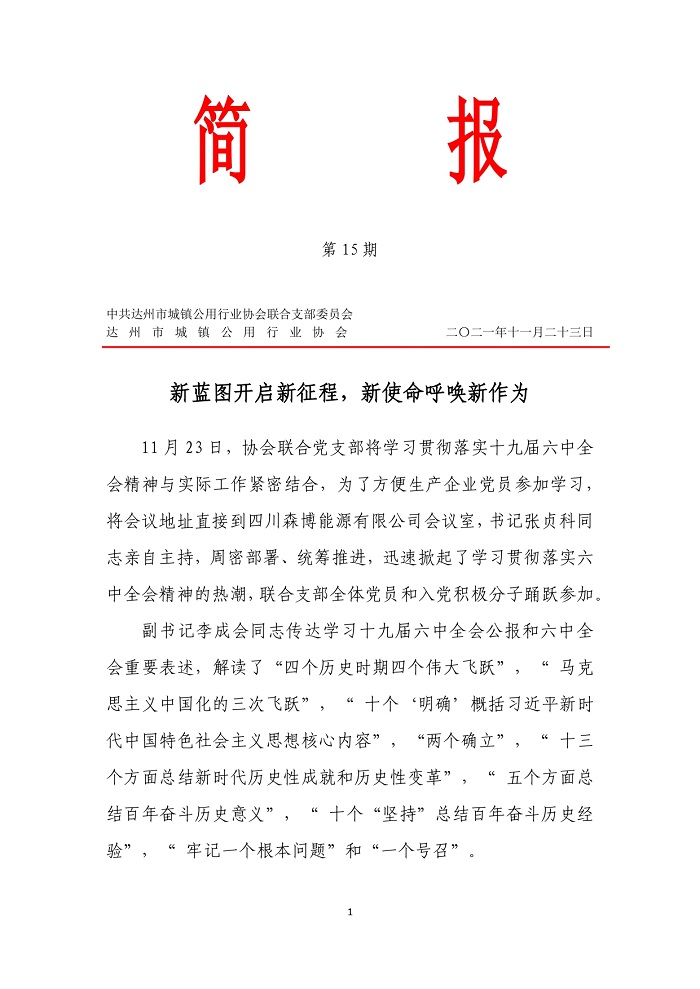 達州市城鎮(zhèn)公用行業(yè)協(xié)會2021年第十五期簡報