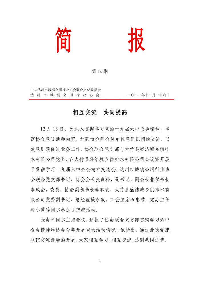 中共達州市城鎮(zhèn)公用行業(yè)協(xié)會聯(lián)合支部委員會2021年第十六期簡報