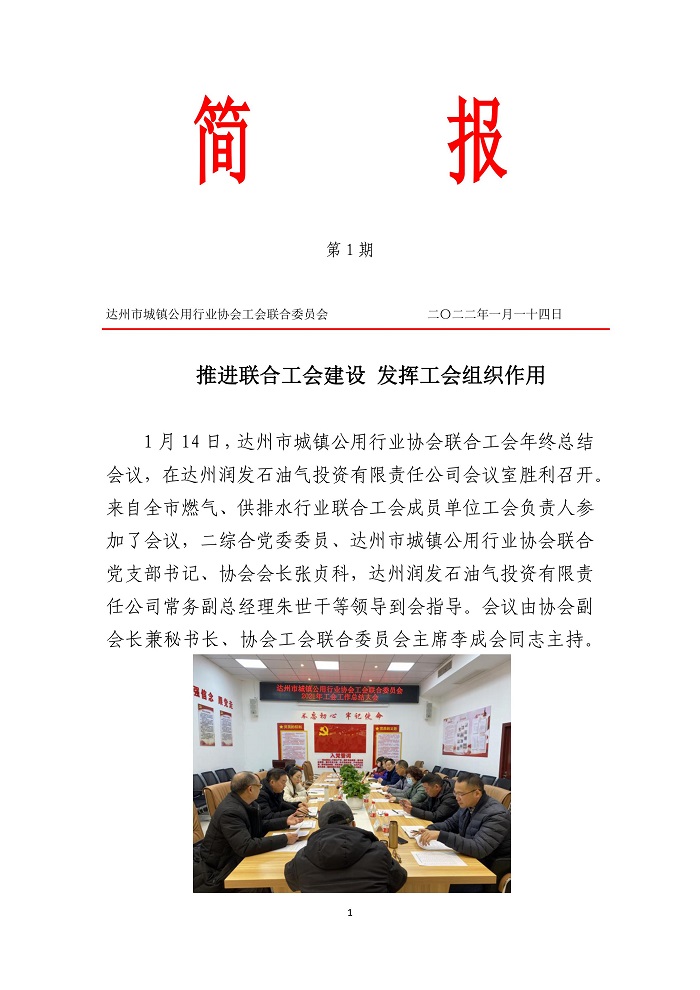 達州市城鎮(zhèn)公用行業(yè)協(xié)會工會聯(lián)合委員會2022年第一期簡報