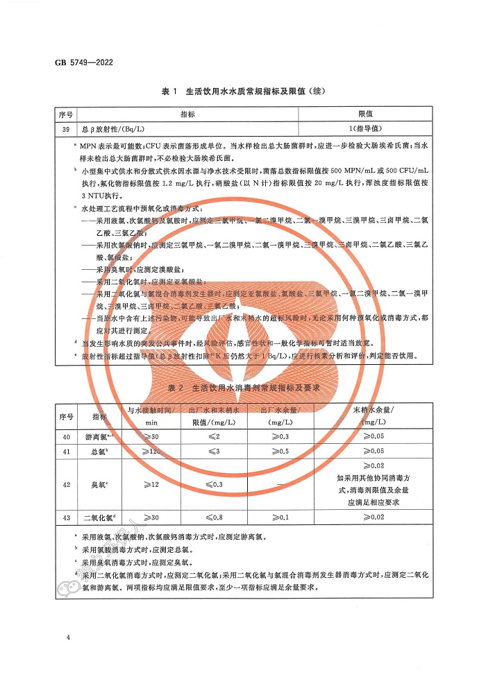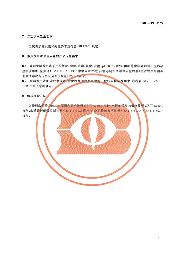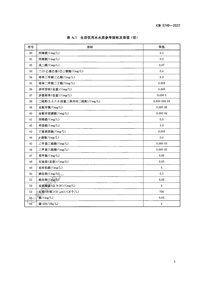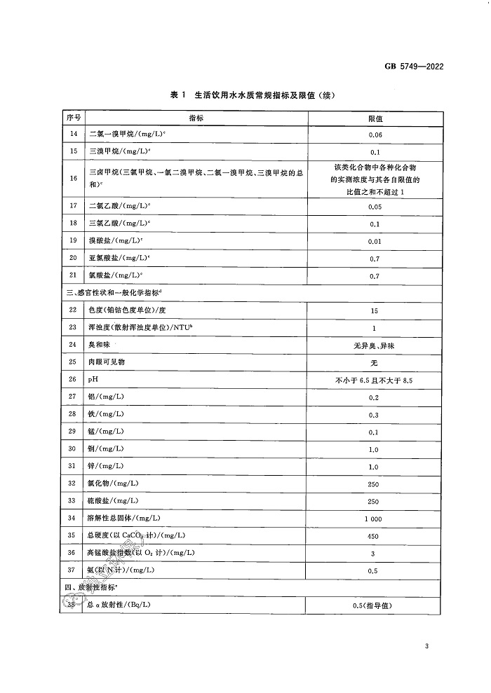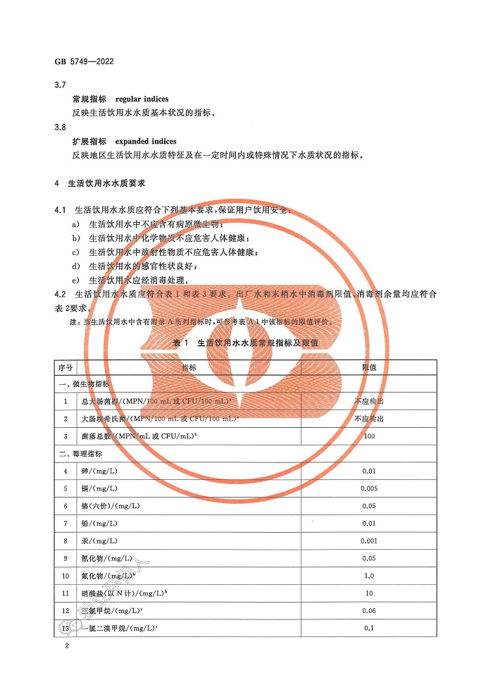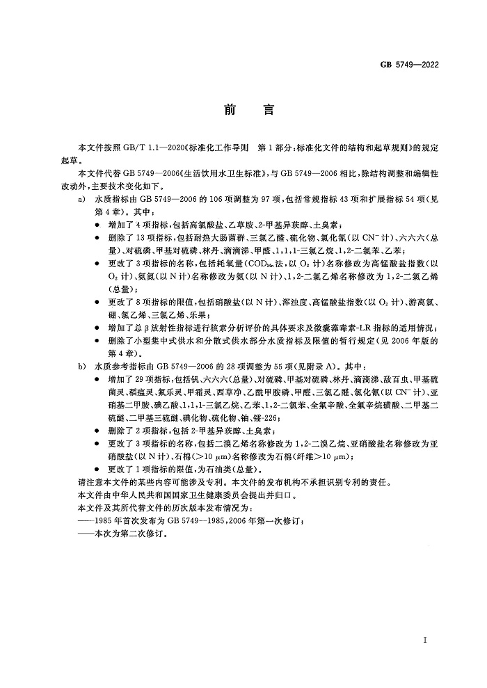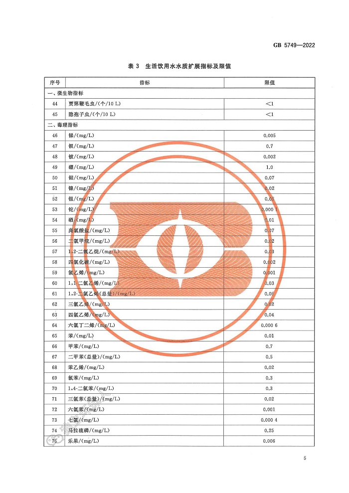 《生活飲用水衛(wèi)生標(biāo)準(zhǔn)》 (GB 5749-2022)