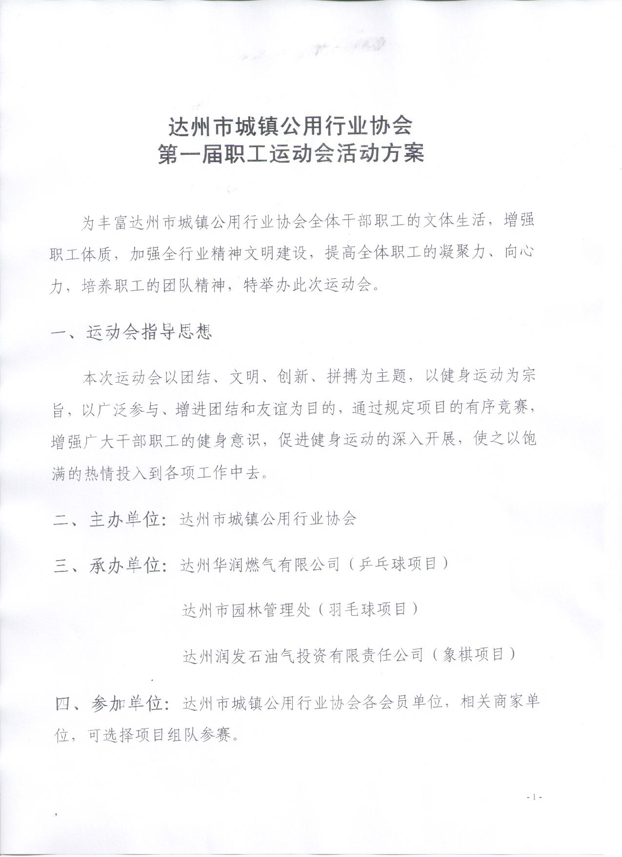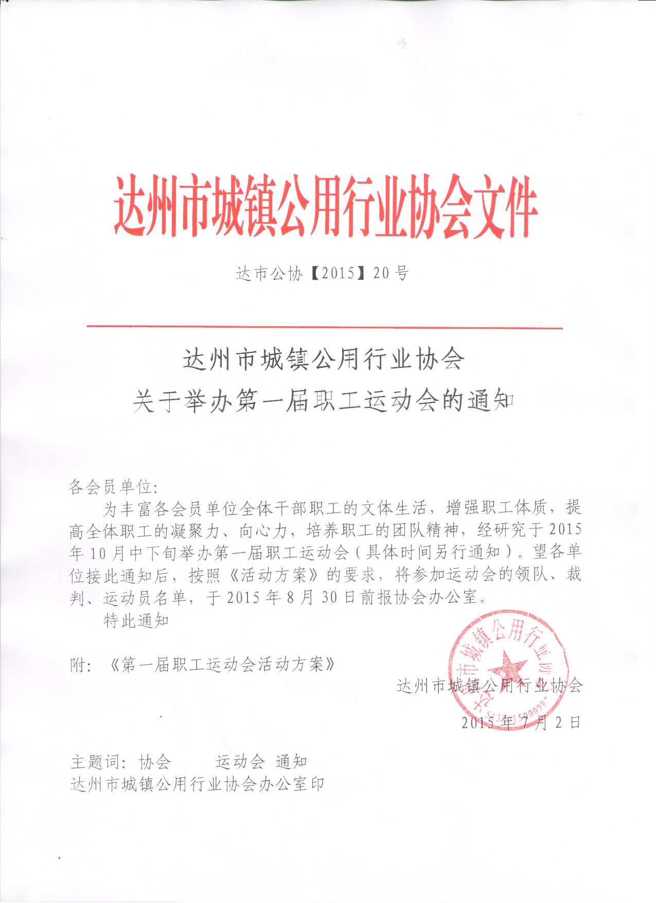 達(dá)州市城鎮(zhèn)公用行業(yè)協(xié)會(huì)關(guān)于舉辦第一屆職工運(yùn)動(dòng)會(huì)的通知