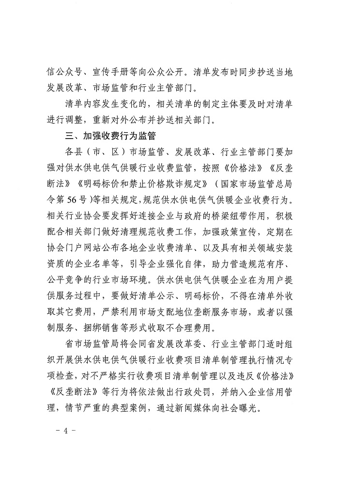 關(guān)于供水供電供氣供暖行業(yè)收費(fèi)項(xiàng)目實(shí)行清單制管理的通知