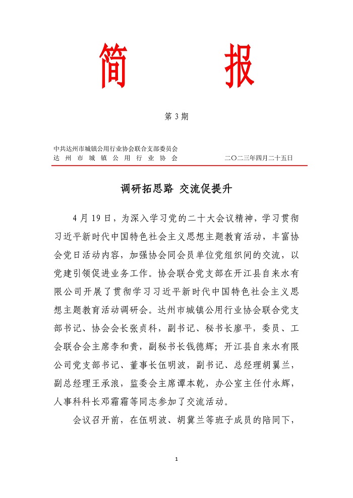 達(dá)州市城鎮(zhèn)公用行業(yè)協(xié)會(huì)2023年第三期簡(jiǎn)報(bào)