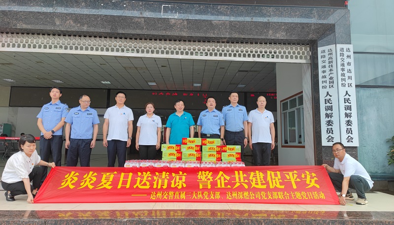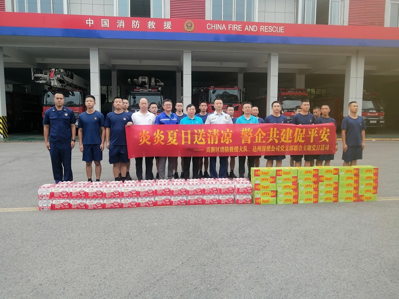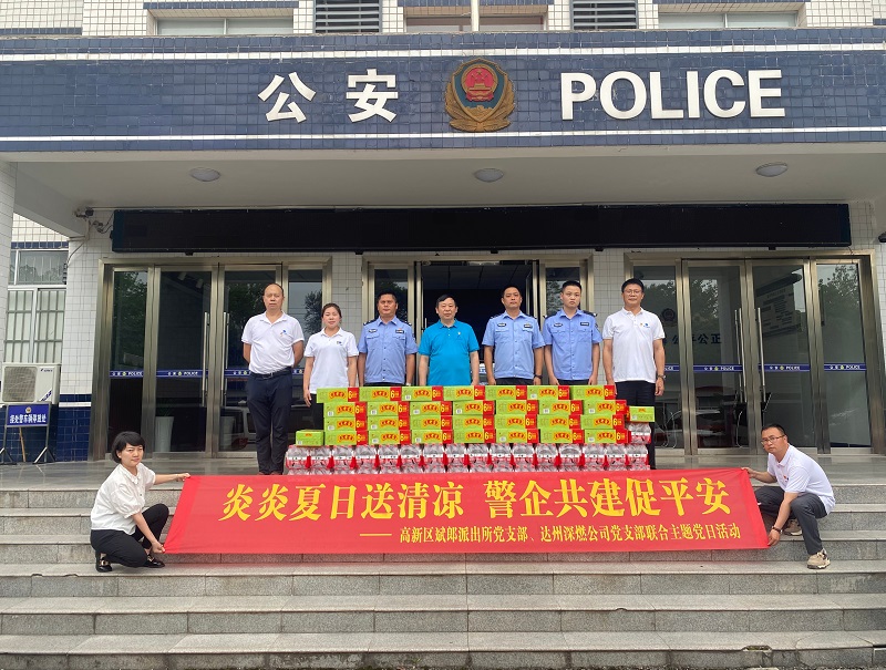 7月21日,達(dá)州深燃公司前往達(dá)州高新區(qū)斌郎派出所、達(dá)州高新區(qū)消防救援大隊(duì)、達(dá)州交警直屬三大隊(duì)開展“炎炎夏日送清涼,警企共建促平安”慶!鞍艘弧苯ㄜ姽(jié)聯(lián)合主題黨日活動(dòng),為民警、消防員送去了礦泉水、涼茶等慰問物資,搭建“警企共建”平臺(tái)。
