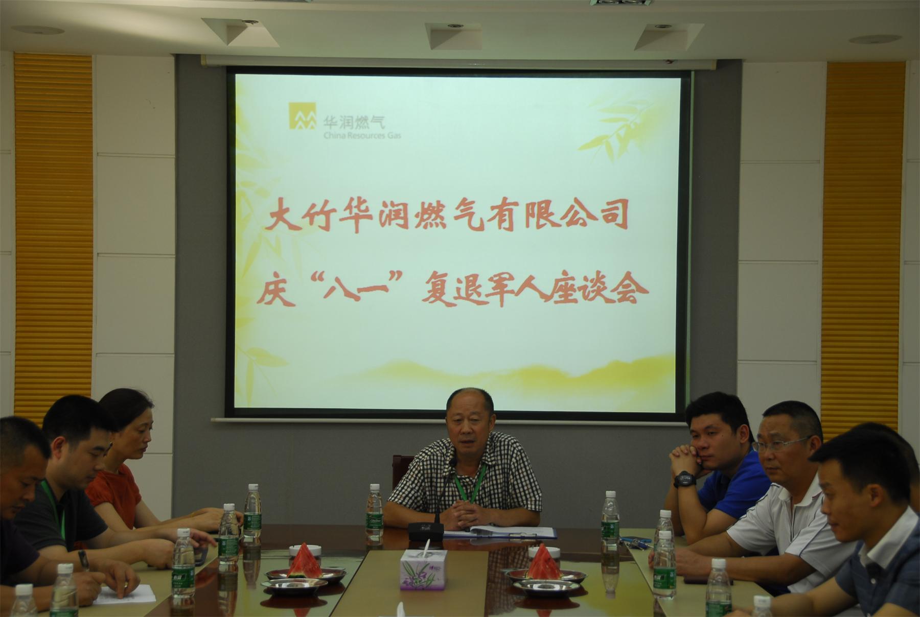 為慶祝中國人民解放軍建軍88周年,慰問轉業(yè)復退軍人,大竹華潤燃氣有限公司于7月28日舉行“慶八一”復退軍人座談會,公司領導和來自各部門的復退軍人30余人參加了座談會。