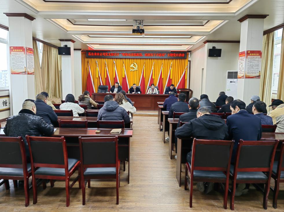 為深入學習中央、省市縣重大決策部署,推動理論學習入腦入心入行動,凝聚干事創(chuàng)業(yè)強大力量。1月10日下午,開江縣自來水公司黨支部組織全體黨員在四樓黨員活動室召開“乘勢而進謀新篇,砥礪實干開新局”主題黨日活動,黨支部書記、董事長伍明波主持活動。