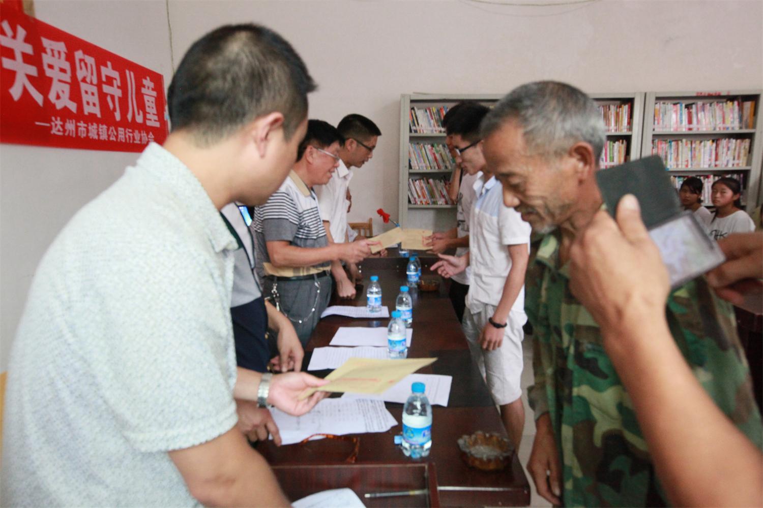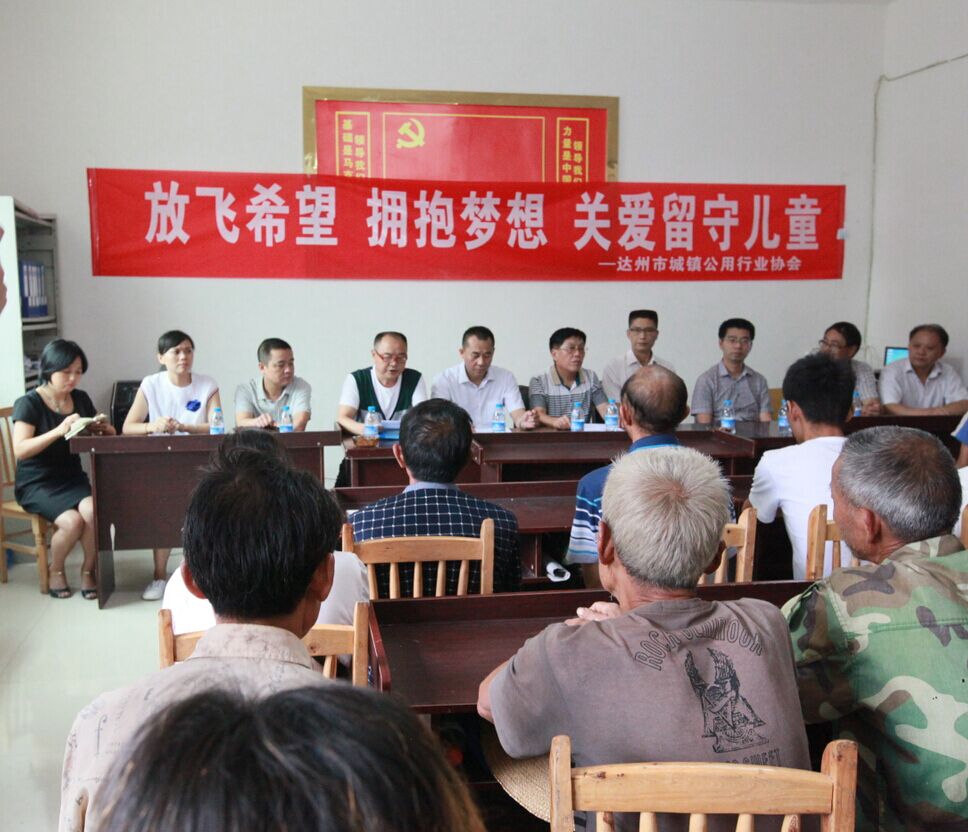 2015年8月25日,達州市城鎮(zhèn)公用行業(yè)協(xié)會組織的“放飛希望,關(guān)愛留守兒童”捐助活動,在宣漢縣南壩鎮(zhèn)雙柏社區(qū)村委會舉行,參加本次活動的有達州市城鎮(zhèn)公用行業(yè)協(xié)會會長張貞科,達州市住建局科長、宣漢縣南壩鎮(zhèn)雙柏社區(qū)黨支部第一書記張友德,達州華潤燃?xì)庥邢薰究偨?jīng)理何勇,大竹華潤燃?xì)庥邢薰靖笨偨?jīng)理饒興榮,大竹縣城鄉(xiāng)供水公司黨總支書記王文友,宣漢縣自來水公司水廠廠長向旭東,宣漢和信天然氣有限公司辦公室主任劉紅琴,宣漢縣南壩鎮(zhèn)副鎮(zhèn)長譚坤蜀,宣漢縣南壩鎮(zhèn)雙柏社區(qū)黨支部書記呂云建。捐助儀式由協(xié)會秘書長李成會主持,首先宣漢縣南壩鎮(zhèn)雙柏社區(qū)黨支部書記呂云建致辭,他對達州市城鎮(zhèn)公用行業(yè)協(xié)會組織的“放飛希望,關(guān)愛留守兒童”捐助活動和各企業(yè)單位及職工的善舉表示衷心感謝。達州華潤燃?xì)庥邢薰究偨?jīng)理何勇代表捐助企業(yè)和職工講話,留守兒童代表發(fā)了言。捐助活動儀式上,各位領(lǐng)導(dǎo)分別為30名留守兒童和3名貧困大學(xué)生發(fā)放慰問金和書包,(現(xiàn)金和書包折合人民幣23686元),最后協(xié)會會長張貞科指出,青少年是祖國的未來,民族的希望。關(guān)心下一代健康成長是全社會的共同責(zé)任,尤其是留守兒童、流動兒童和貧困家庭兒童是社會的弱勢群體,更需要社會的關(guān)愛和幫助,用愛的雙手托起他們的翅膀,激勵他們努力學(xué)習(xí),堅定對未來美好生活的信心,使他們在溫暖的陽光下茁壯成長。