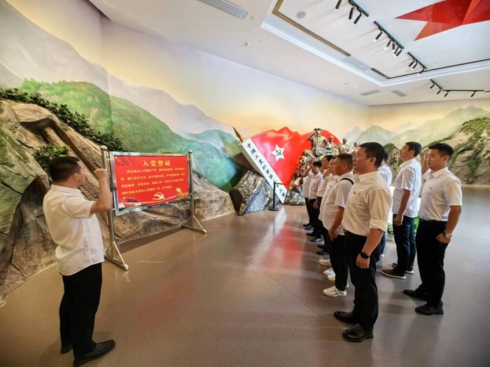 在紅三十三軍紀念館門口,全體黨員重溫了入黨誓詞。