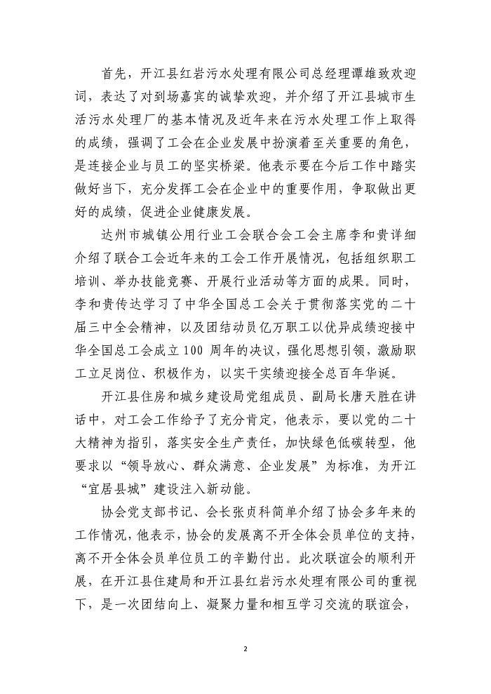 達州市城鎮(zhèn)公用行業(yè)協(xié)會2025年第二期簡報