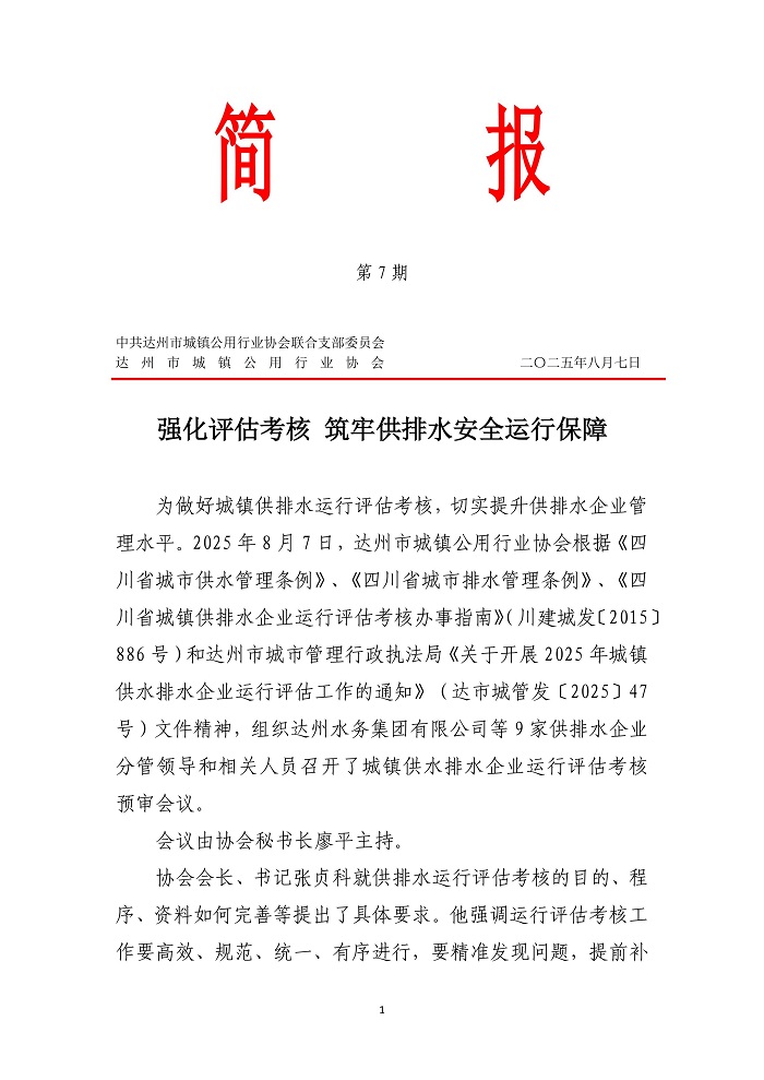 達(dá)州市城鎮(zhèn)公用行業(yè)協(xié)會(huì)2025年第八期簡(jiǎn)