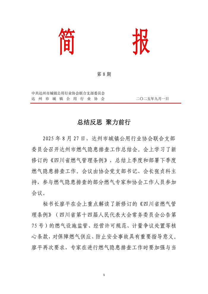達州市城鎮(zhèn)公用行業(yè)協(xié)會2025年第八期簡