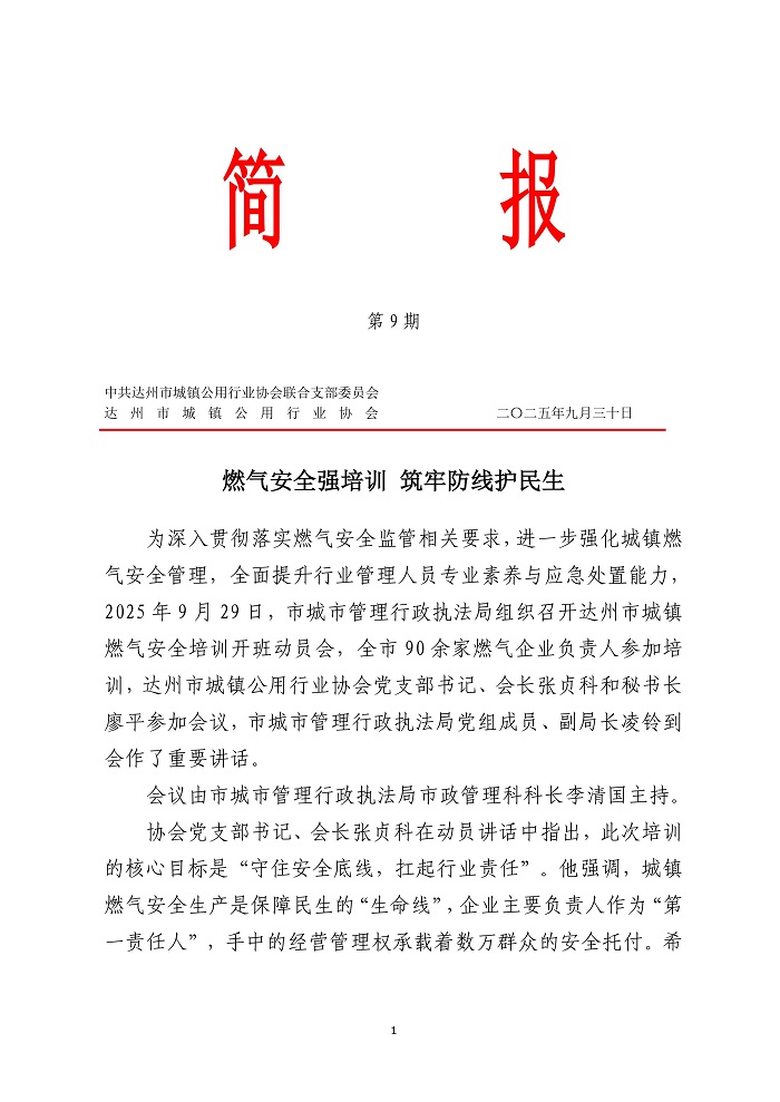 達(dá)州市城鎮(zhèn)公用行業(yè)協(xié)會2025年第九期簡報