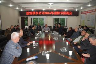 泓霖供水公司召開2016年重陽節(jié)座談會。步步登高開視野,年年重九勝春光。為喜迎2016年重陽佳節(jié),10月9日,泓霖供水公司組織公司退休老領導、老職工20余人在公司二樓會議室召開了重陽節(jié)座談會,送上公司對各位退休老同志們的節(jié)日祝福與問候。