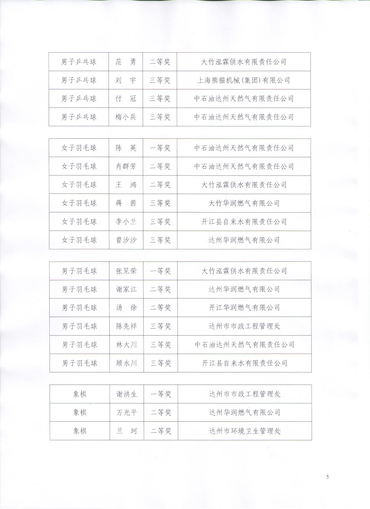 達(dá)州市城鎮(zhèn)公用行業(yè)協(xié)會(huì)關(guān)于表彰第二屆“熊貓杯”職工運(yùn)動(dòng)會(huì)參賽單位和個(gè)人的通報(bào)