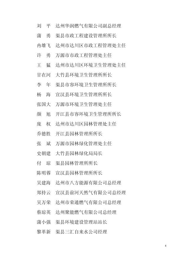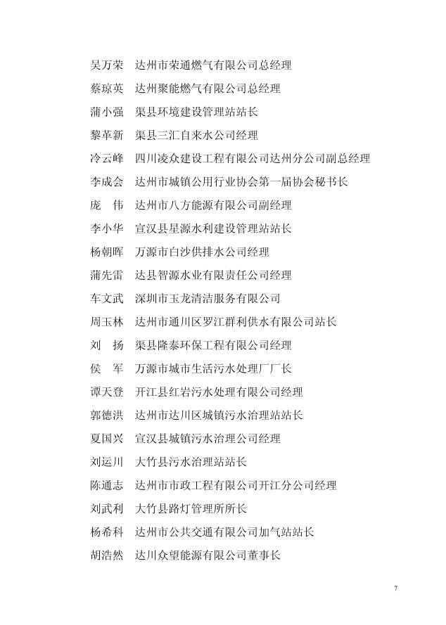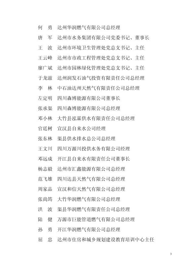 達(dá)州市城鎮(zhèn)公用行業(yè)協(xié)會(huì)關(guān)于二屆組織機(jī)構(gòu)成員名單的通知