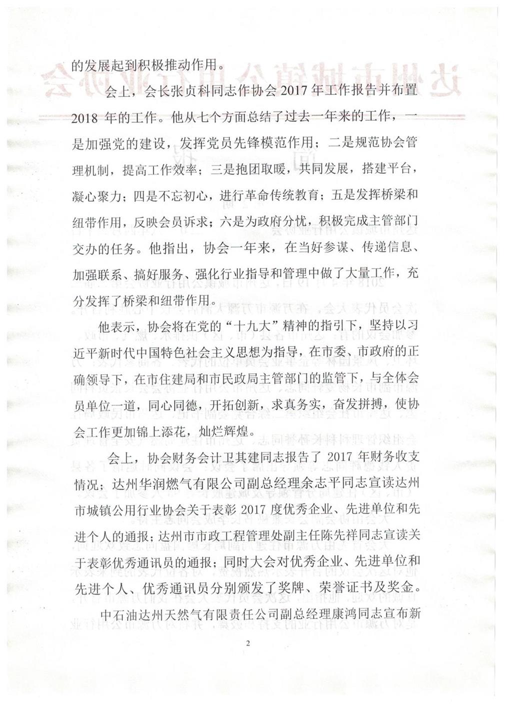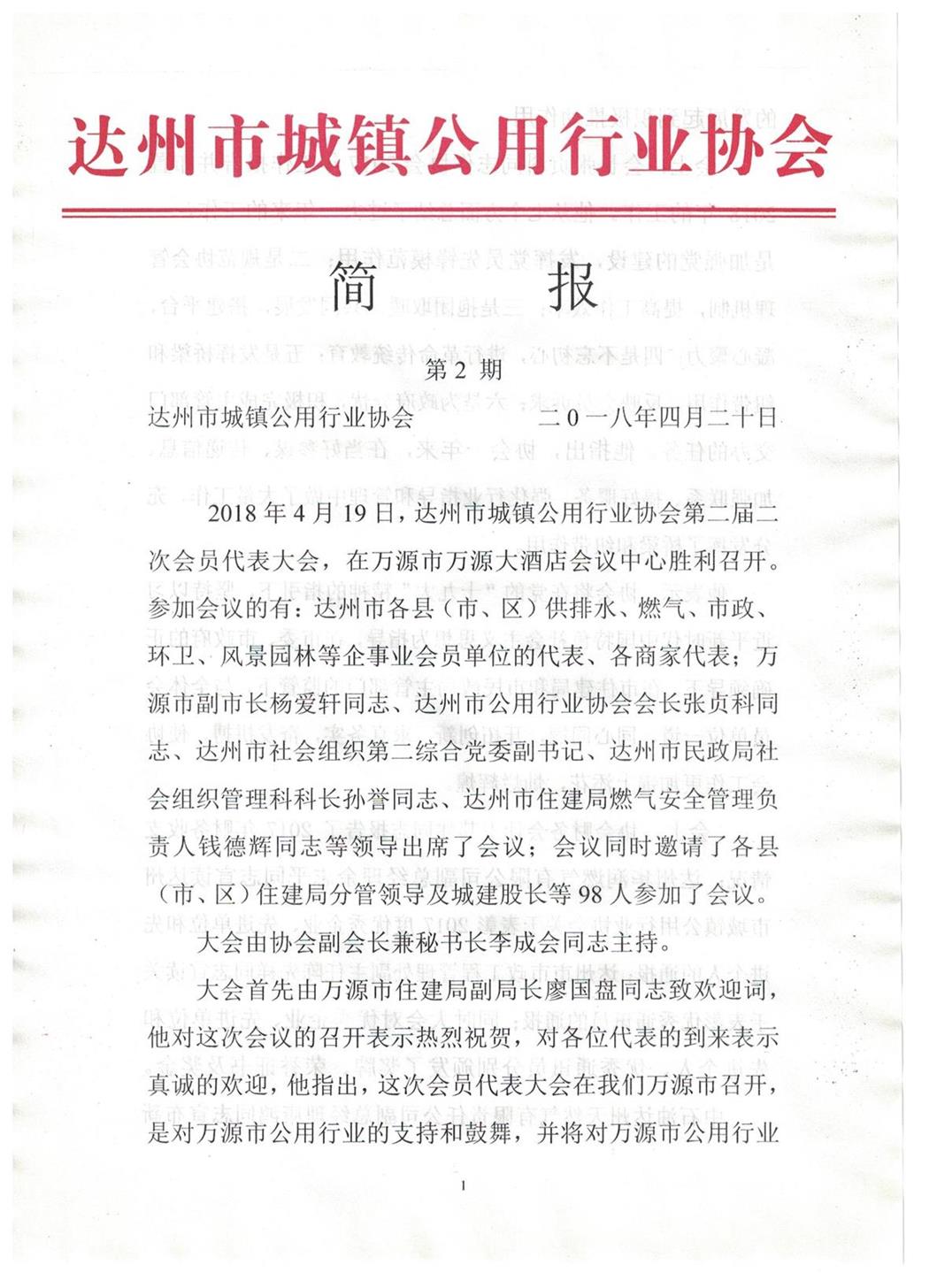 達州市城鎮(zhèn)公用行業(yè)協(xié)會2018年第二期簡報