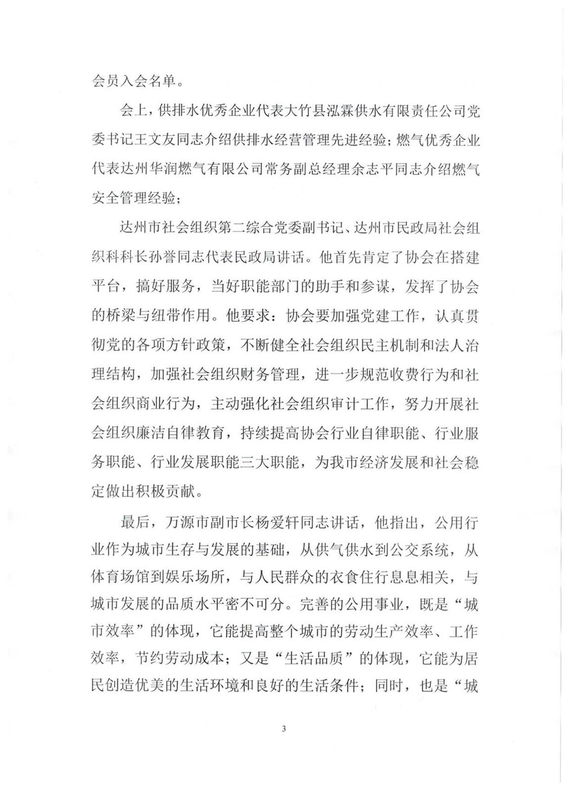 達州市城鎮(zhèn)公用行業(yè)協(xié)會2018年第三期簡報
