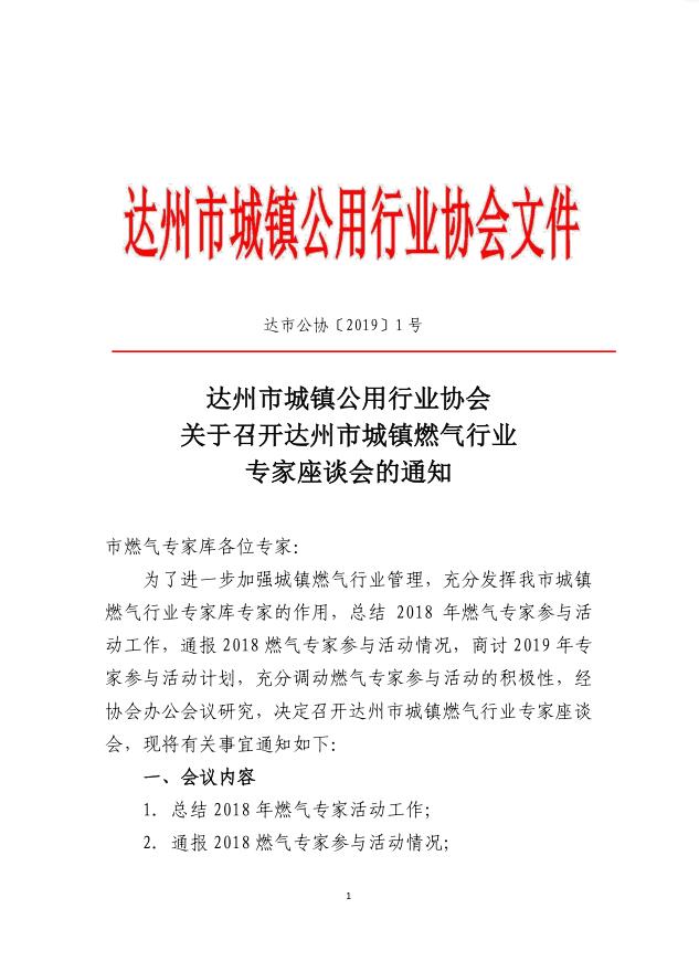 關(guān)于召開達(dá)州市城鎮(zhèn)燃?xì)庑袠I(yè)專家座談會的通知