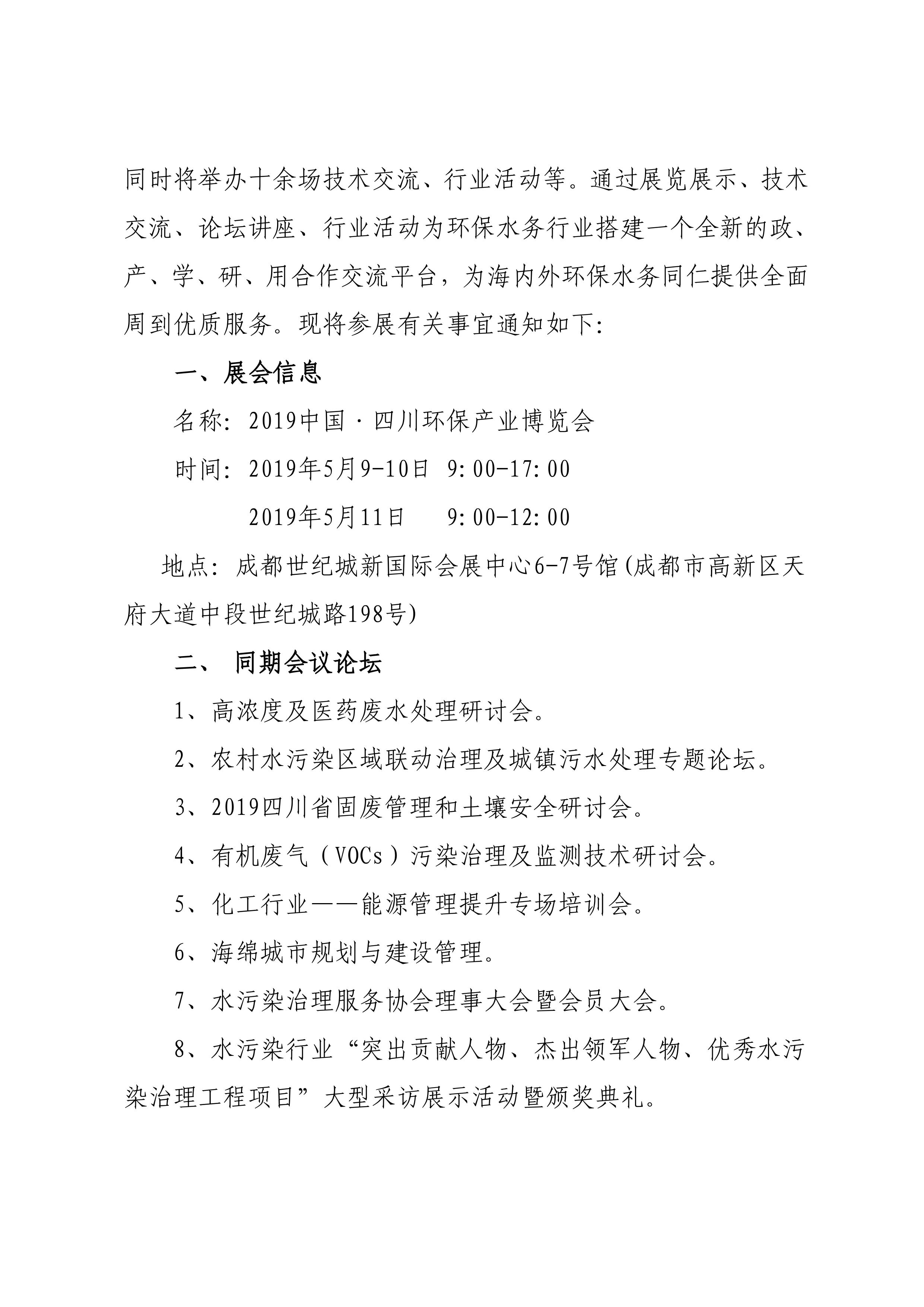 關(guān)于組團(tuán)參加2019中國(guó)•四川供排水水處理技術(shù)設(shè)備展覽會(huì)的通知