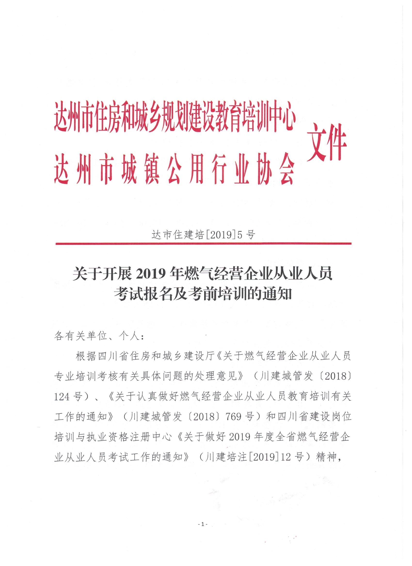關(guān)于開展2019年燃?xì)饨?jīng)營企業(yè)從業(yè)人員考試報(bào)名及考前培訓(xùn)的通知