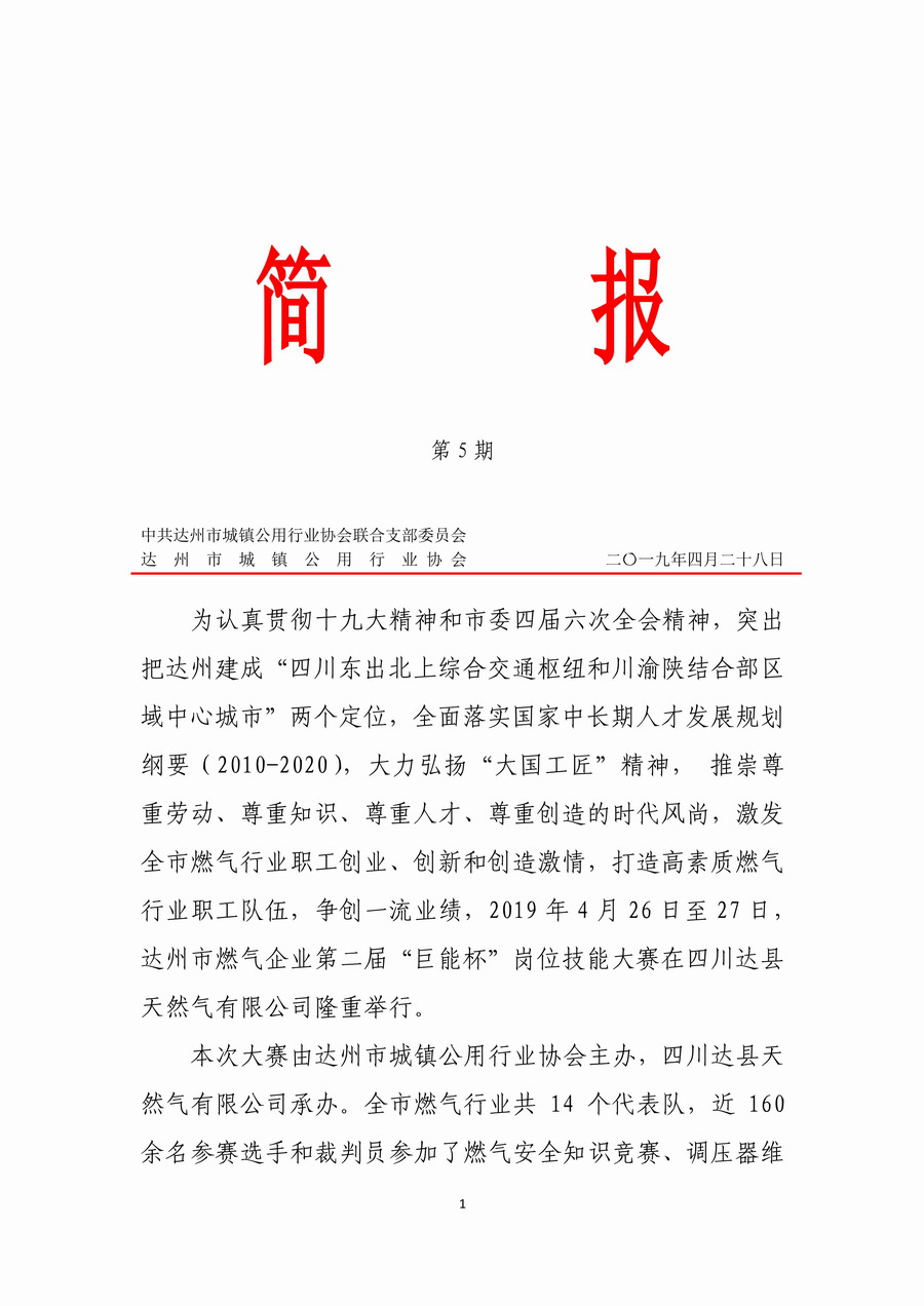 中共達(dá)州市城鎮(zhèn)公用行業(yè)協(xié)會(huì)聯(lián)合支部委員會(huì)2019年第五期簡(jiǎn)報(bào)
