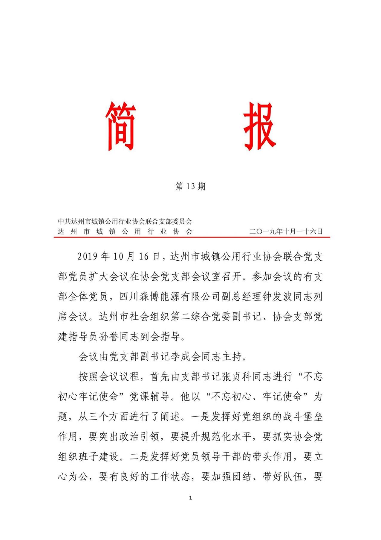 中共達州市城鎮(zhèn)公用行業(yè)協(xié)會聯(lián)合支部委員會2019年第十四期簡報